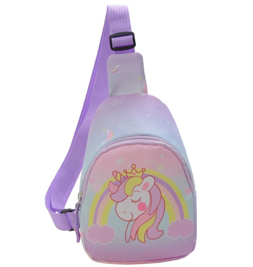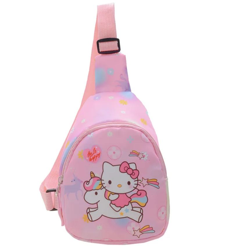 Mini bolsa infantil cruzada, riñonera Material NYLON Medidas 19*15 cm Modelo dinosaurio, spider, kitty y unicornio